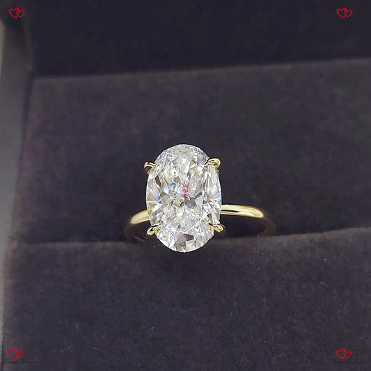 Bague de fiançailles en or jaune massif avec diamant ovale de 3 carats cultivé en laboratoire