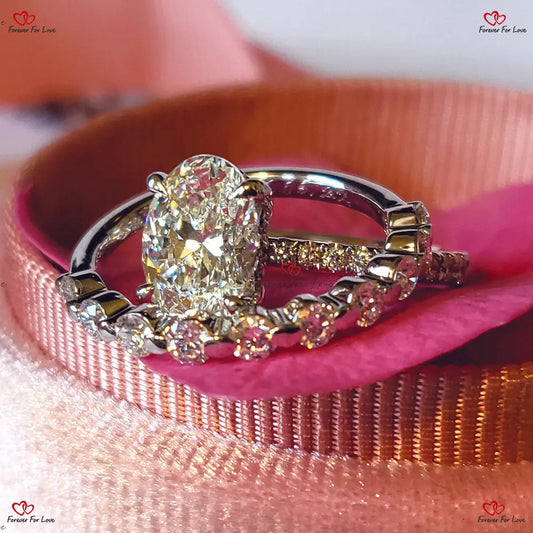 Bague de fiançailles solitaire en diamant de laboratoire de taille ovale certifiée IGI de 3 carats avec alliance en diamant rond assortie - Or jaune