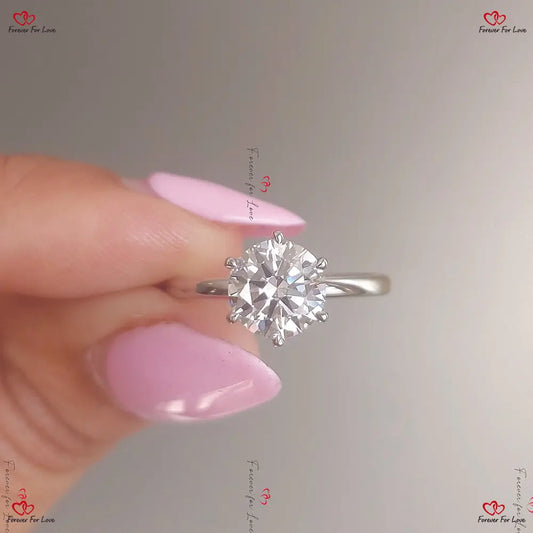 Bague de fiançailles solitaire à 6 griffes et à coupe ronde