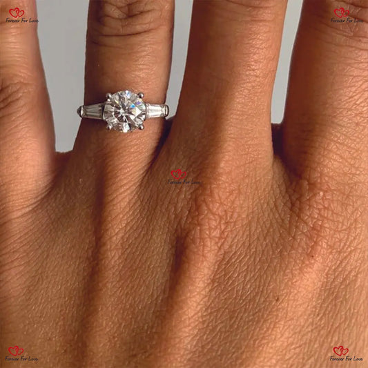 Bague de fiançailles en moissanite ronde certifiée et diamant baguette – Bague de fiançailles et d'anniversaire à trois pierres rondes