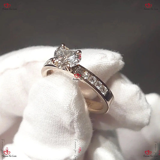 Bague de fiançailles avec diamants en forme de cœur sertis en canal