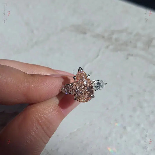 Bague de fiançailles en diamant rose taille poire à trois pierres créé en laboratoire
