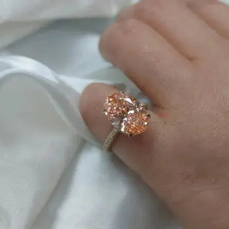 Bague de fiançailles avec diamant rose taille ovale créé en laboratoire