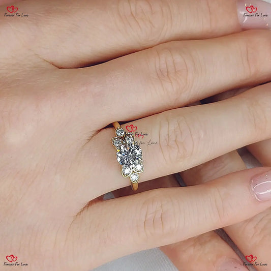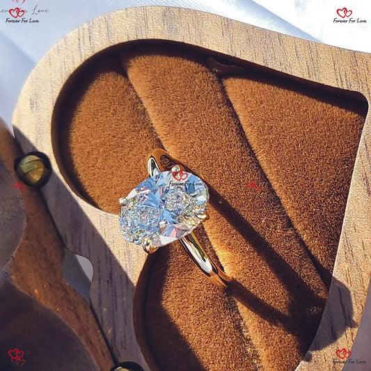Bague de fiançailles en or massif avec diamant solitaire ovale
