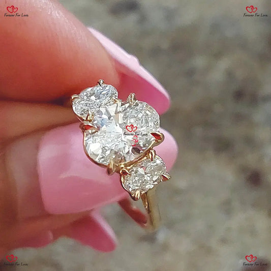Bague de fiançailles avec diamants taillés en glace pilée ovale et perle