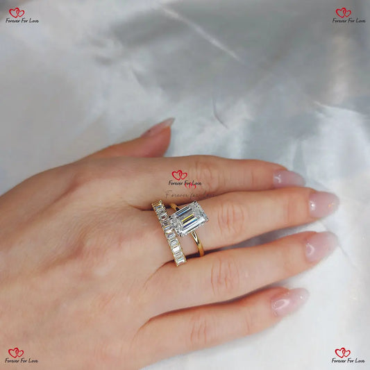 Ensemble de mariage en or massif avec diamants taille émeraude