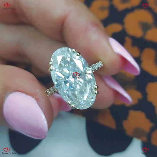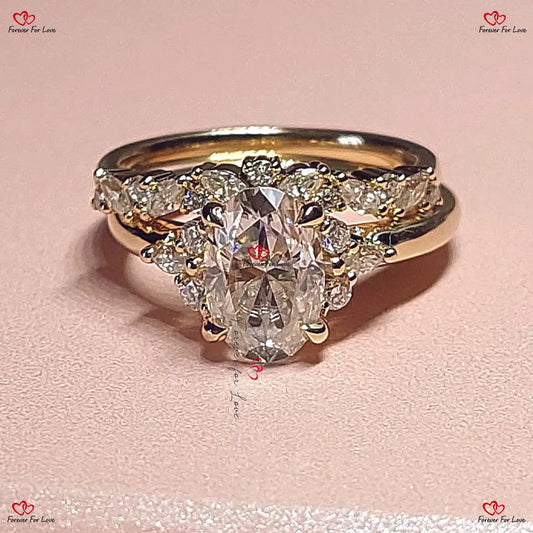 Bague de fiançailles et ensemble nuptial avec diamant taille ovale