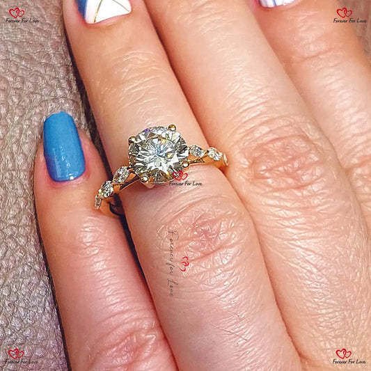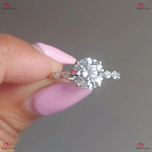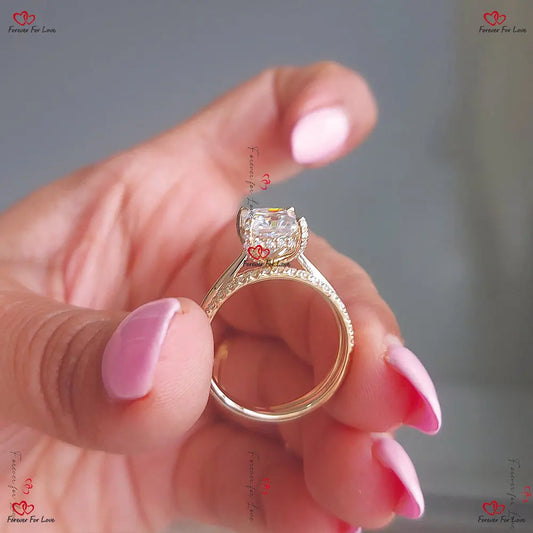 Bague de fiançailles avec halo caché en diamant taille ronde dans un anneau pavé