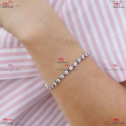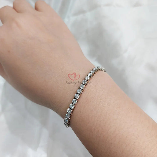 Bracelet de tennis en or blanc avec diamants taille ronde fait main