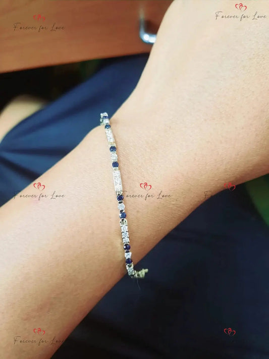 Bracelet de tennis en or 14 carats avec diamants et saphirs de 2 mm