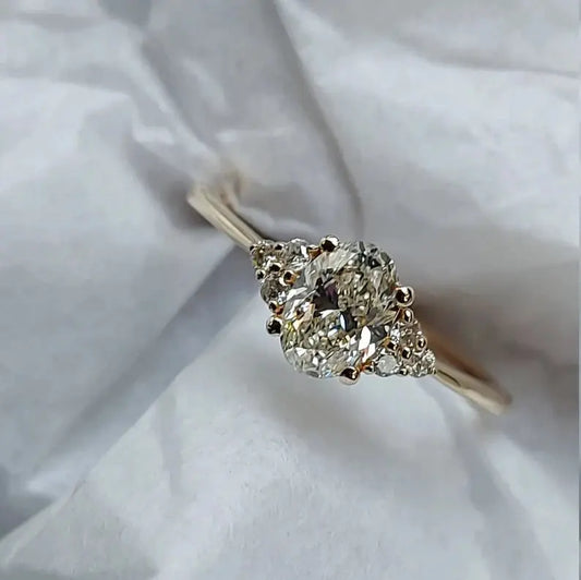 Bague à trois pierres en diamants ovales naturels certifiés GIA de 0,8 carat