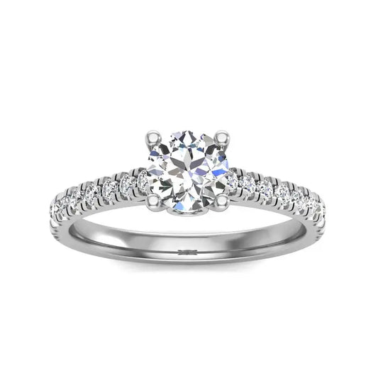 Bague de fiançailles en diamant naturel rond brillant de 0,5 carat avec bande pavée