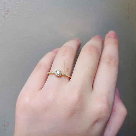 Bague de fiançailles en diamant certifié E VS (6,5 mm) avec halo de diamants cachés