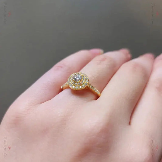 Bague en diamant rond naturel à double halo pavé de 0,5 carat