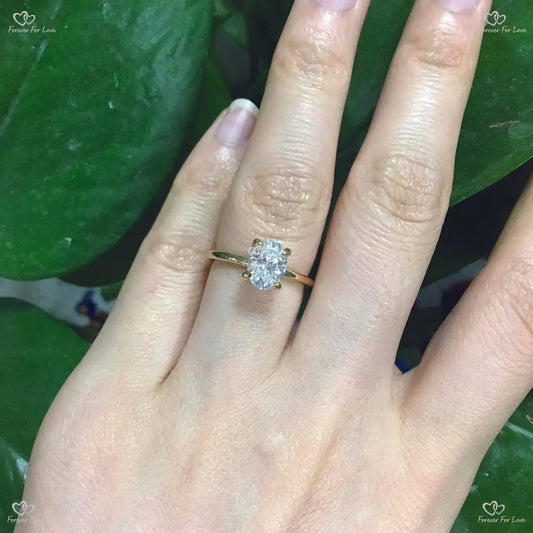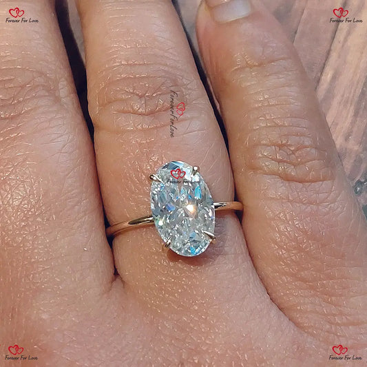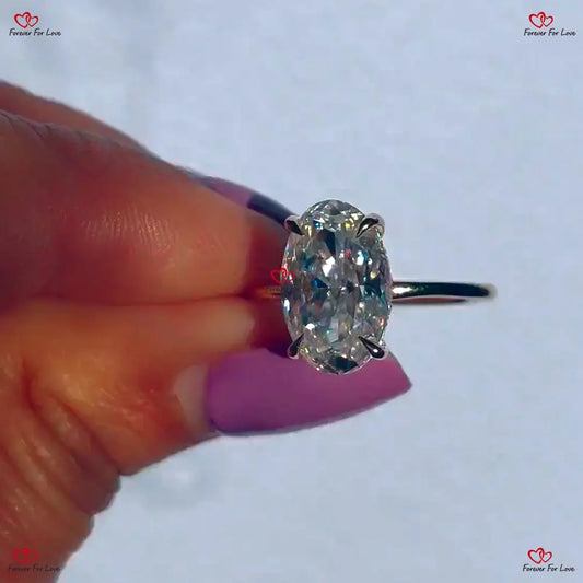 Bague de fiançailles en moissanite ovale | Bague solitaire en moissanite ovale | Bague de fiançailles à monture en or blanc