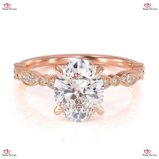 Bague de fiançailles Forever One en or rose avec moissanite ovale