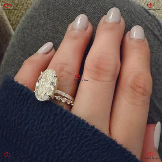 Bague de fiançailles en moissanite ovale | Glace pilée hybride | Sertissage en donut
