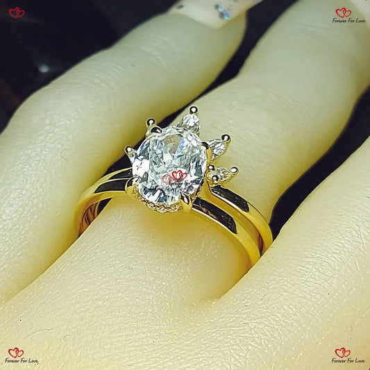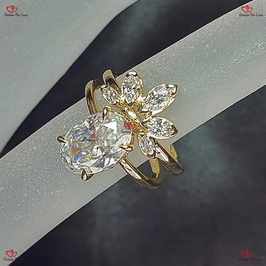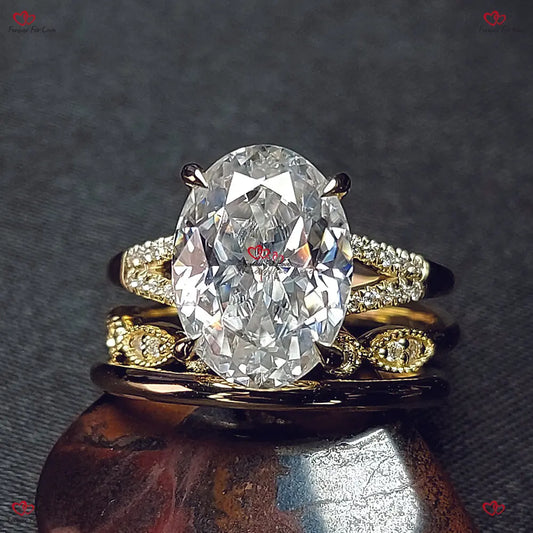 Bague de fiançailles en moissanite ovale sertie sur or jaune vintage