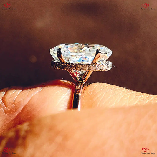 Bague de fiançailles en moissanite ovale | Or massif | Halo caché | Taille brillant