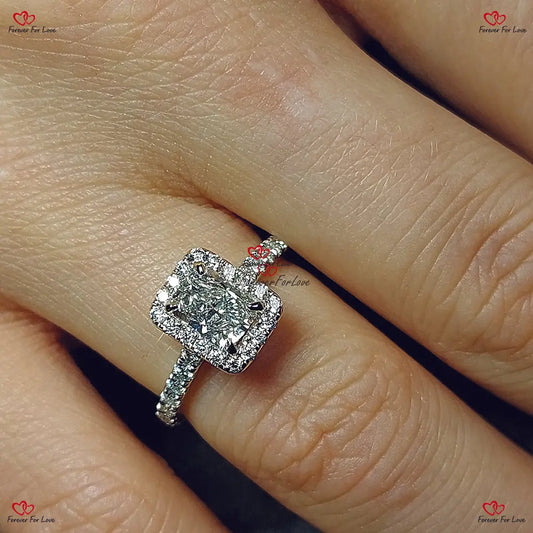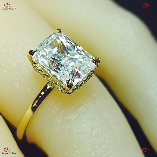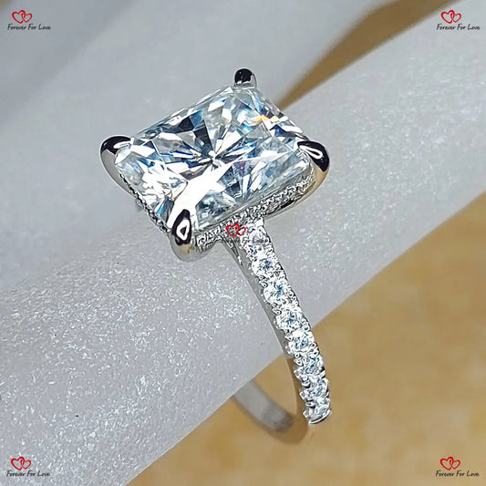 Bague de fiançailles en moissanite taille radiante avec halo caché