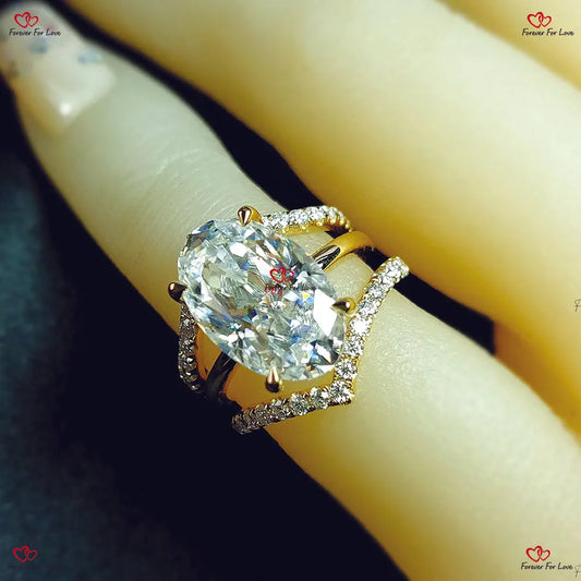 Bague de fiançailles en moissanite à taille ovale - Forever One Elongated Oval en or massif