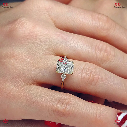 Bague de fiançailles en diamant taille radiant avec diamants naturels Kite - Bague trilogie certifiée IGI