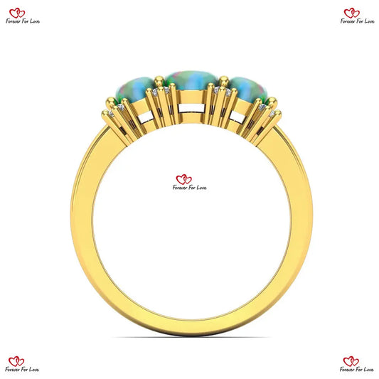 Bague de fiançailles élégante à trois pierres en opale ovale naturelle