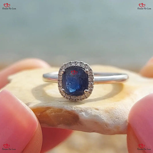 Bague de fiançailles en or blanc avec saphir bleu naturel et diamant