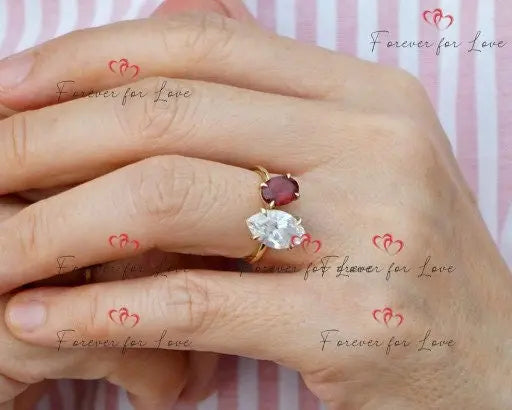 Bague vintage en diamant marquise naturel - Certifiée IGI avec accents de grenat en or jaune