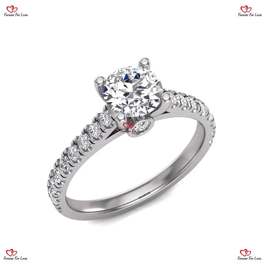 Bague de fiançailles en or massif avec diamants ronds naturels certifiés