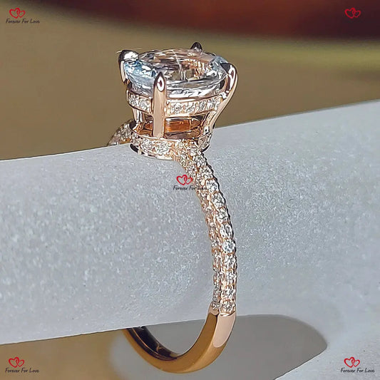 Bague Blake Lively Bague de fiançailles en saphir blanc Bague en or rose avec diamant taille ovale