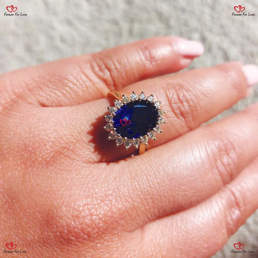 Élégance royale : bague de fiançailles en saphir bleu certifié naturel de la princesse Diana