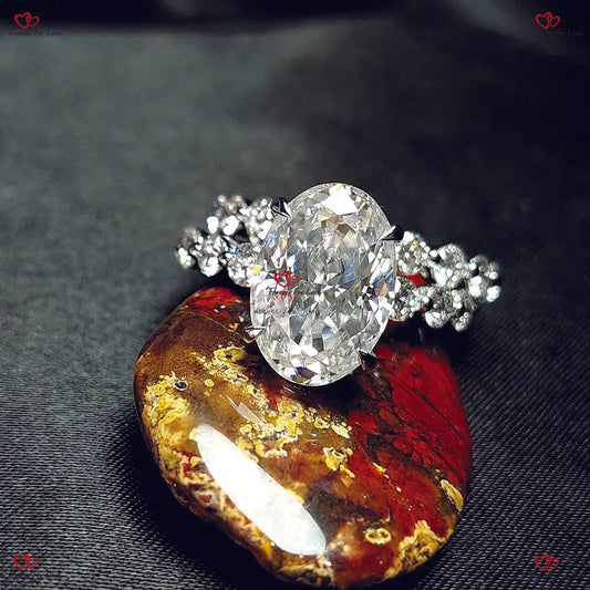 Bague de mariage vintage fantaisie avec diamants ovales en glace pilée