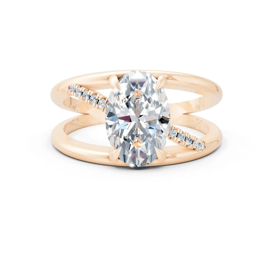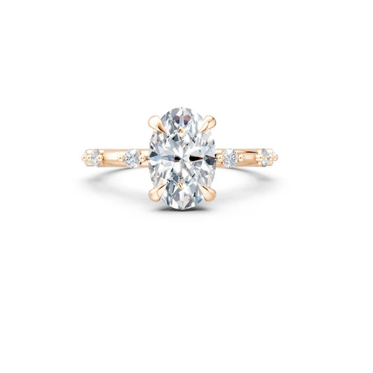 Ovaler Diamant-Verlobungsring mit schwebendem Pavé-Band