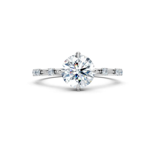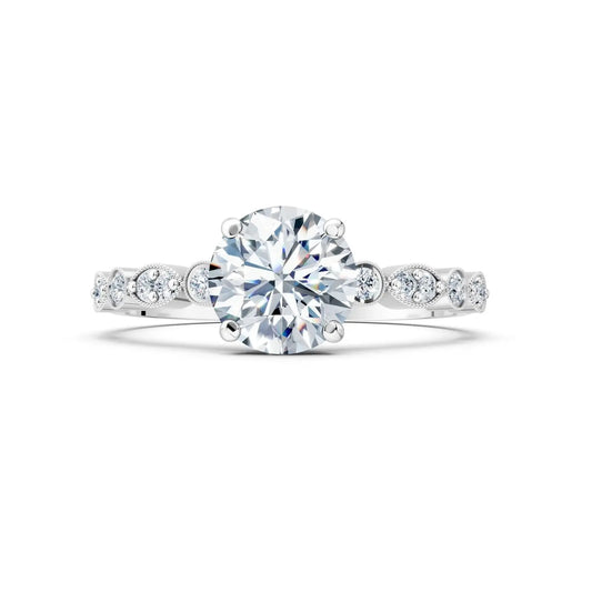 Vintage Round Diamond Milgrain Engagement Ring with Diamond Accents