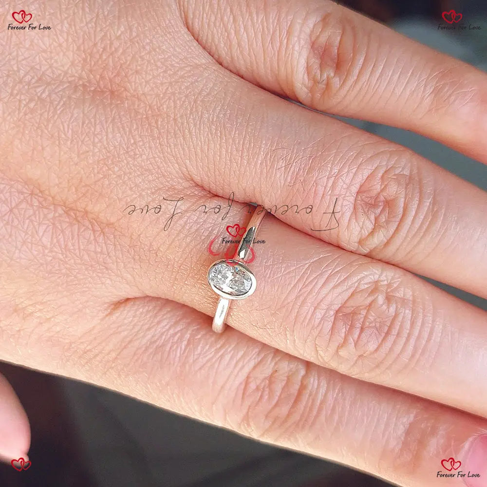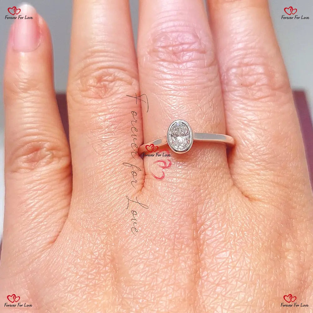 Bague de fiançailles solitaire avec diamant taille ovale et serti clos