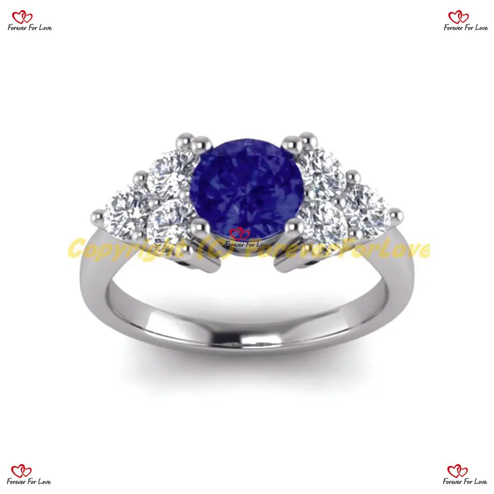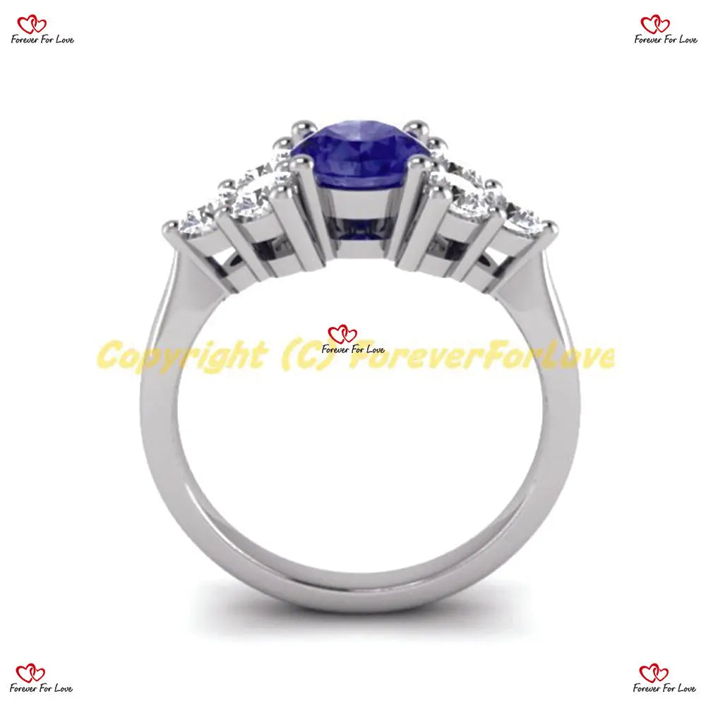 Bague de fiançailles en or blanc avec saphir bleu royal naturel