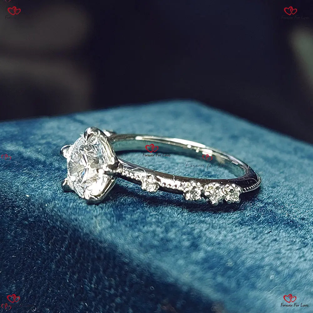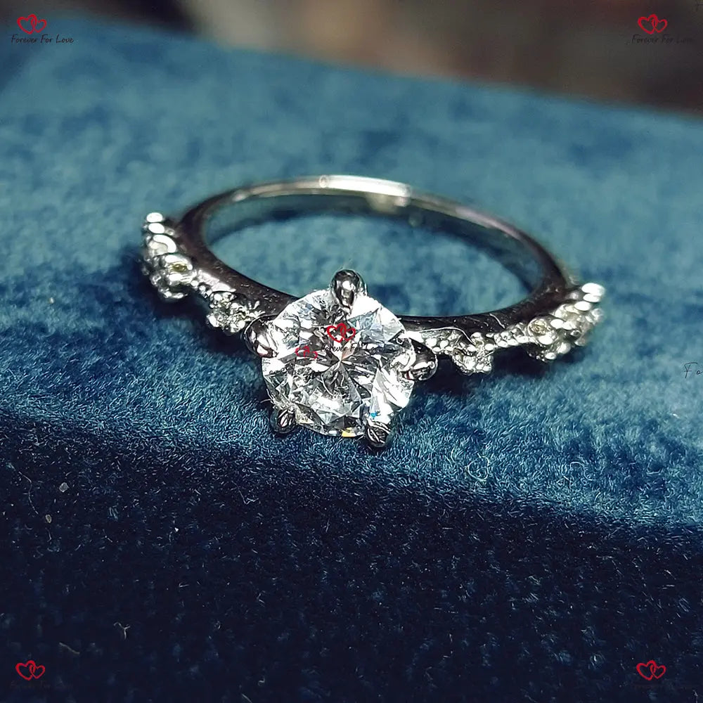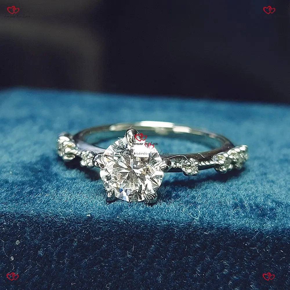 Bague de fiançailles avec diamant rond et bande pavée flottante