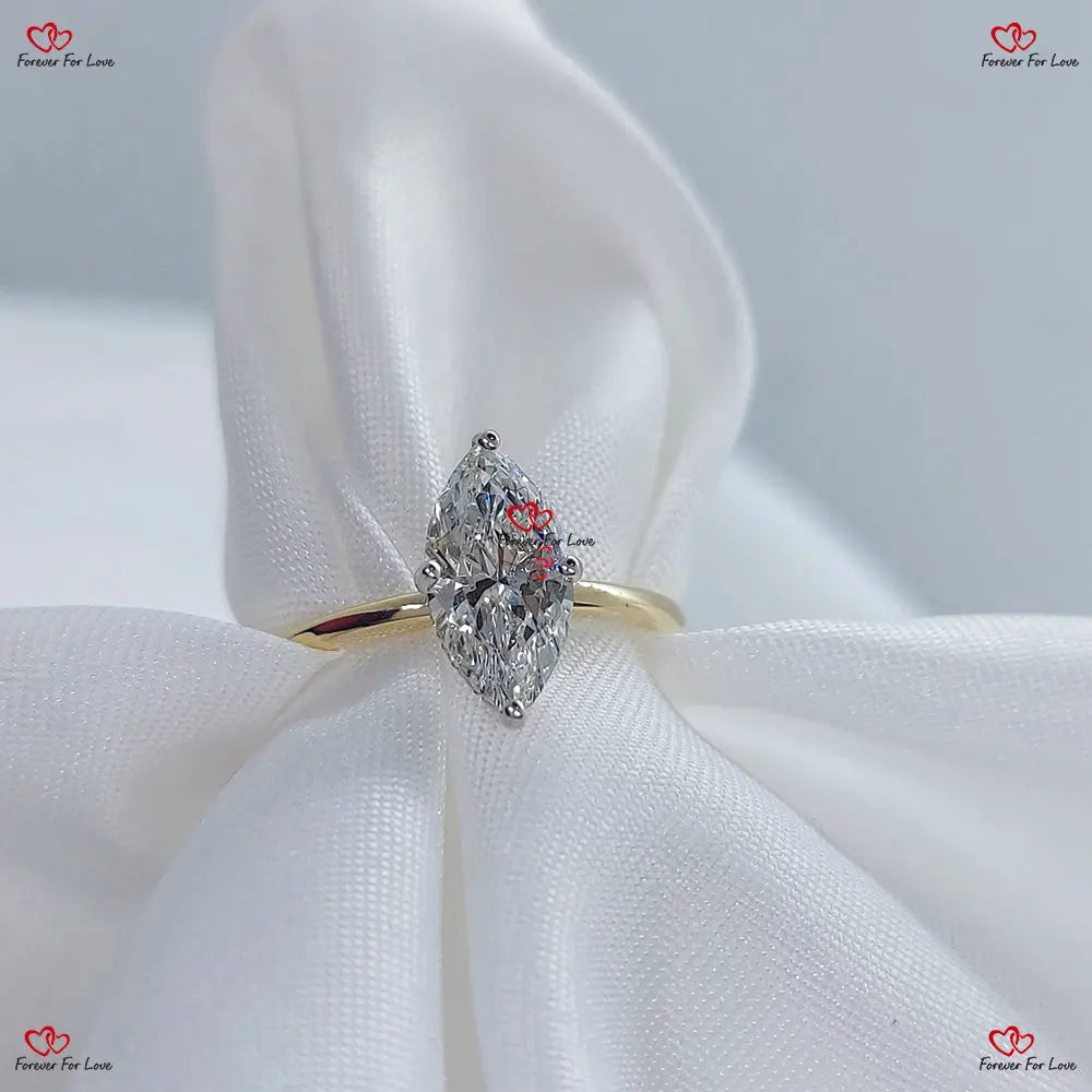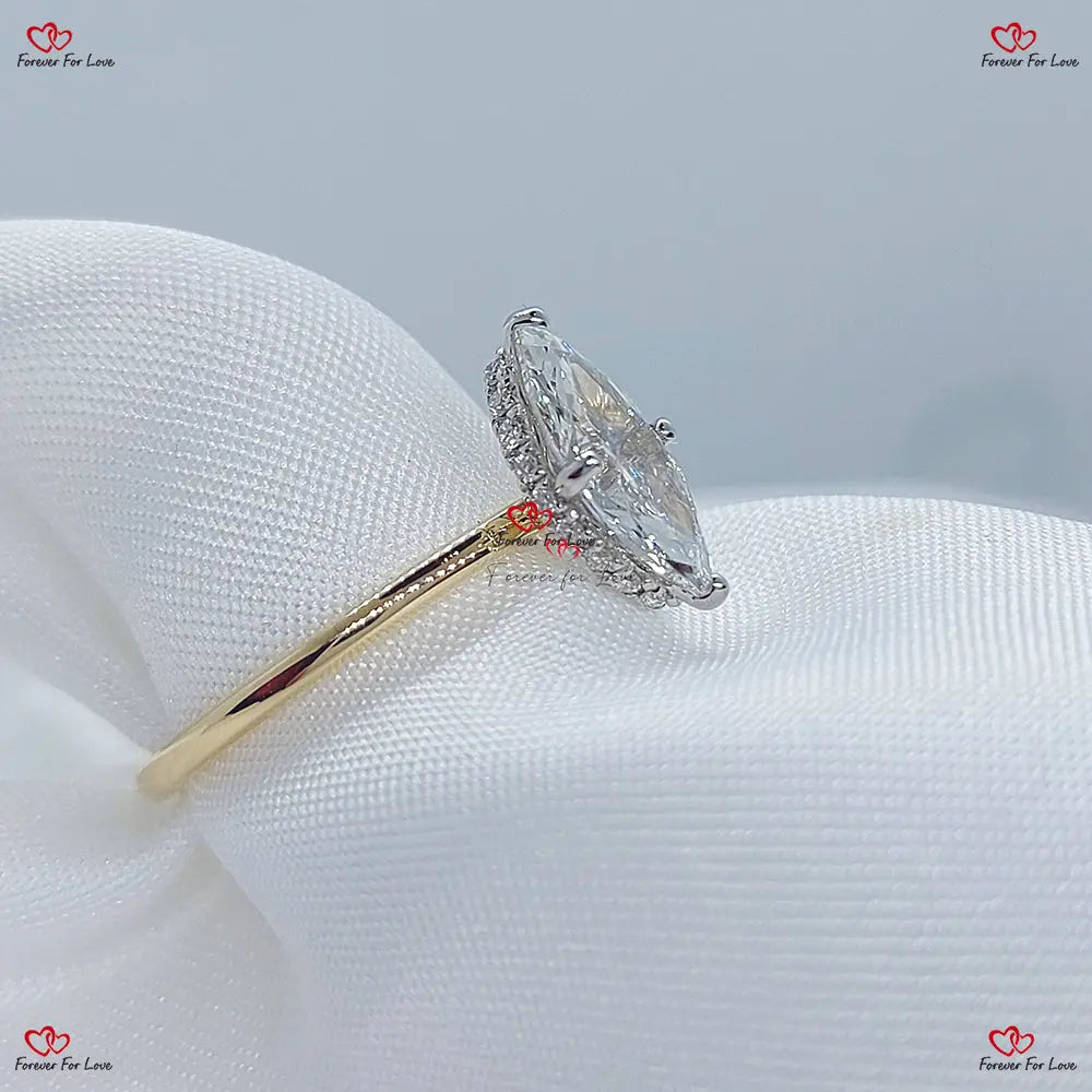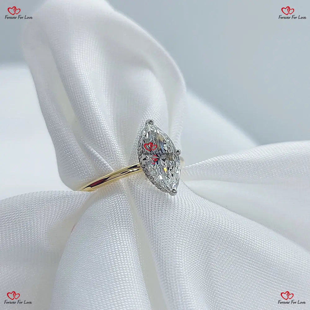 Bague de fiançailles avec halo caché de diamants taille marquise