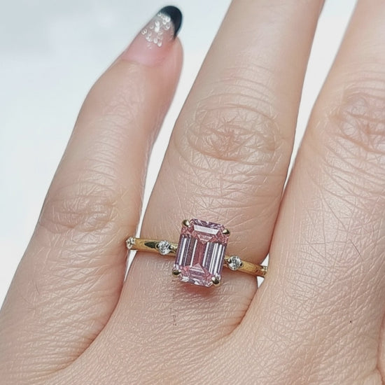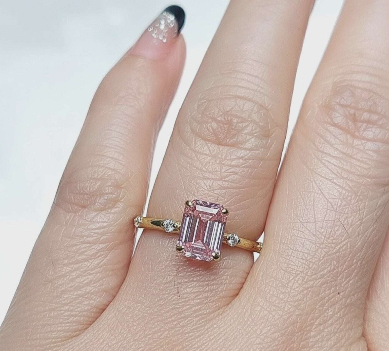 Pink Emerald Cut Lab Created Diamond, Engagement Ring