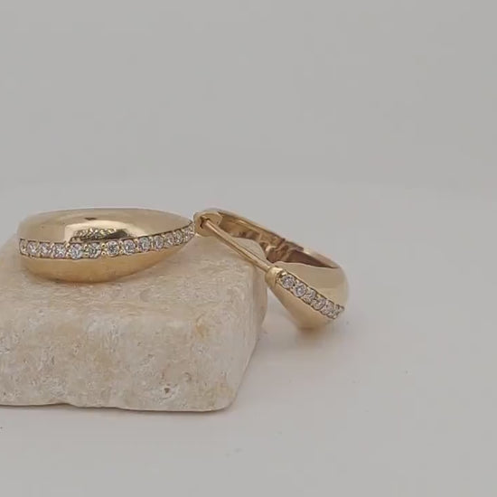 14k Gold Plain Thick Huggie Earrings with Diamonds