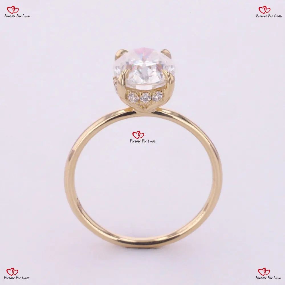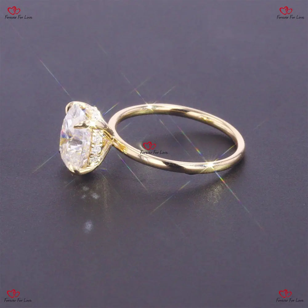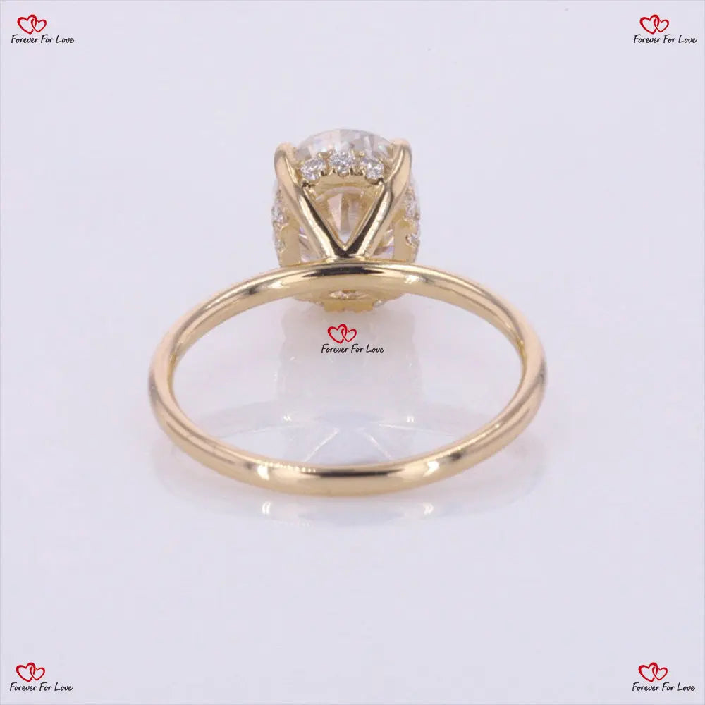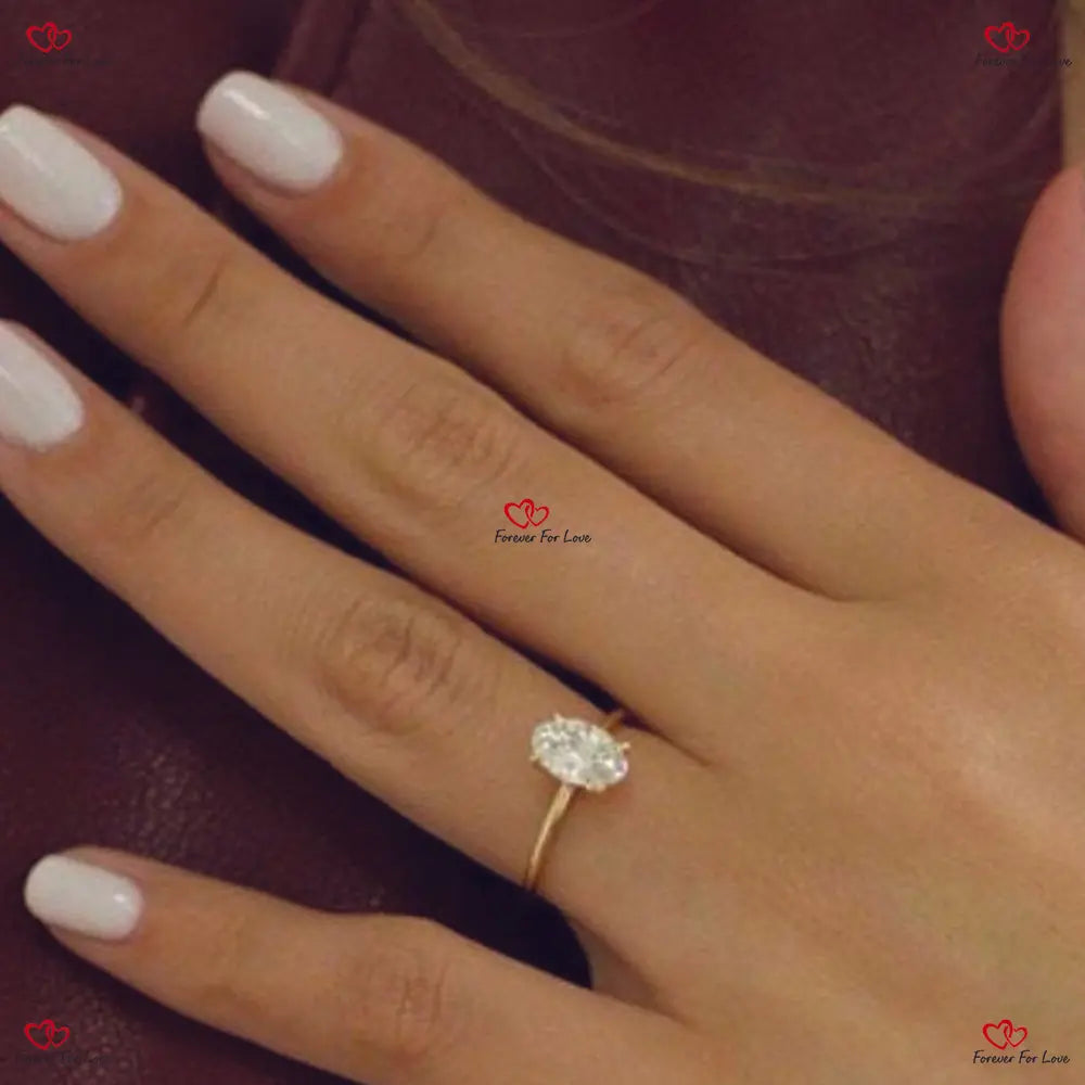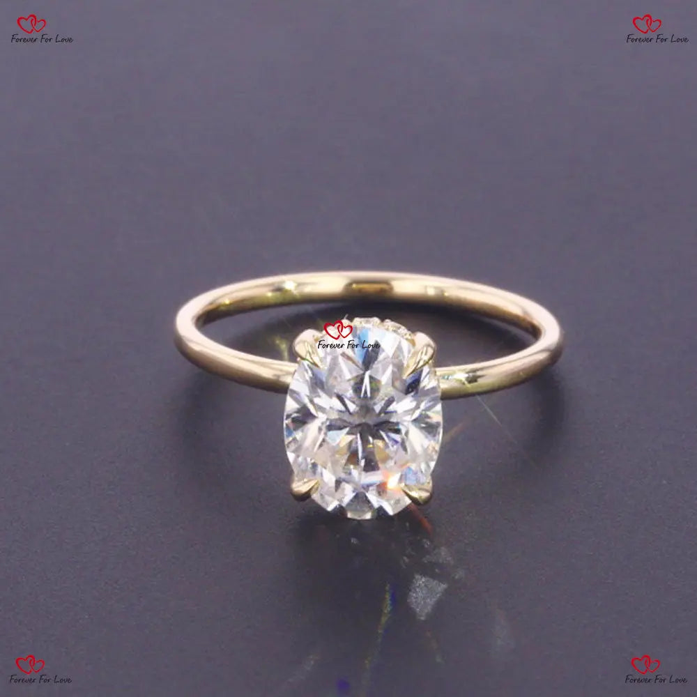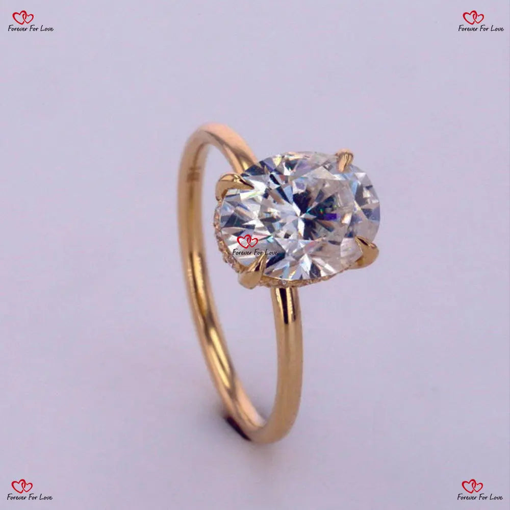 Bague de fiançailles ovale Forever One en moissanite et halo de diamants en platine ou en or blanc