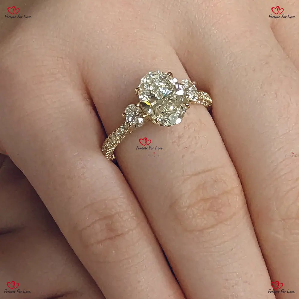Bague de fiançailles vintage en or jaune avec diamant ovale cultivé en laboratoire - Bague de fiançailles personnalisée certifiée IGI