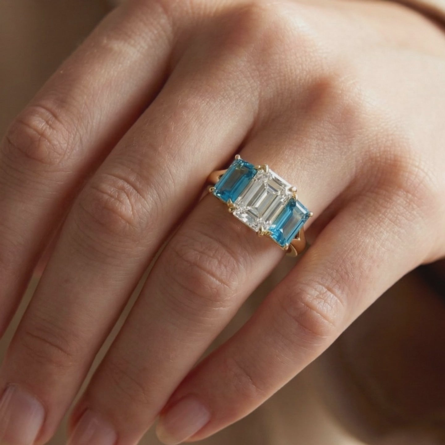 2Ct Radiant Trilogy Lab Diamond Ring with Blue Topaz
