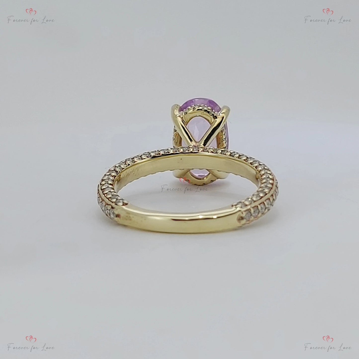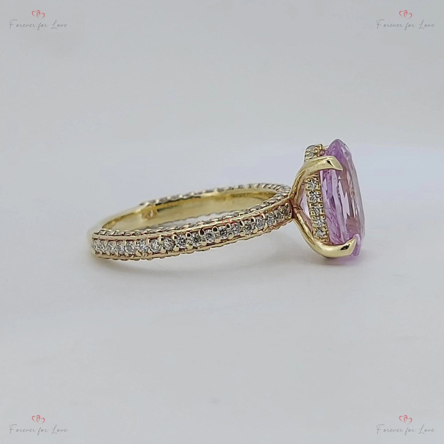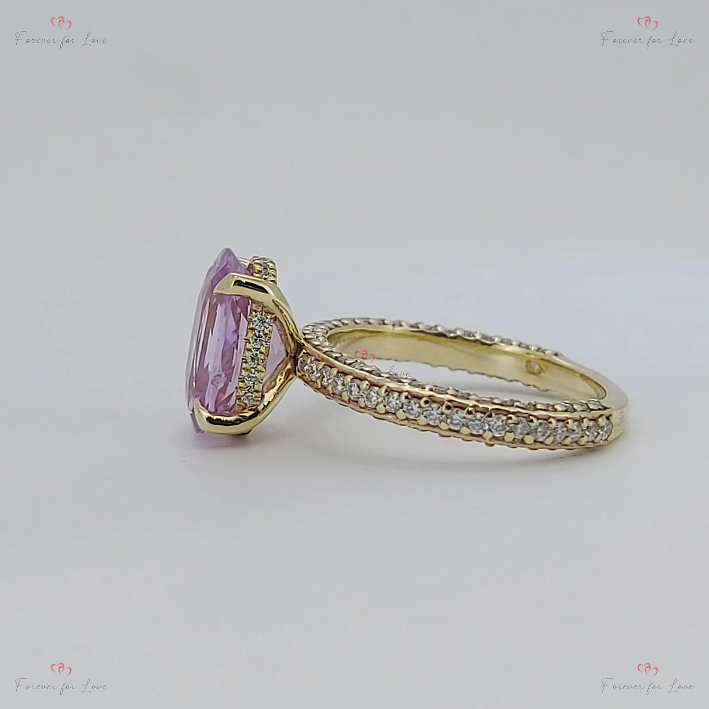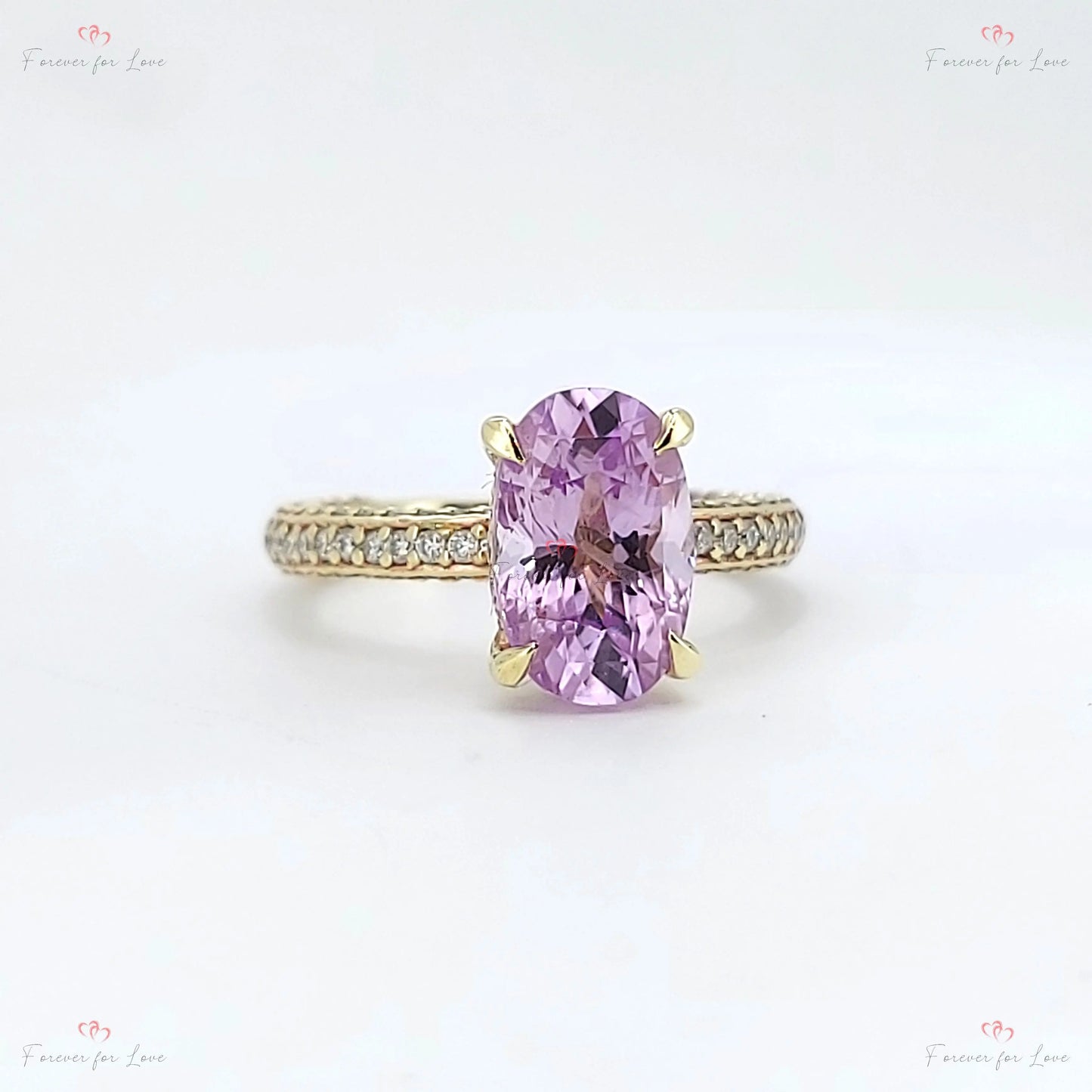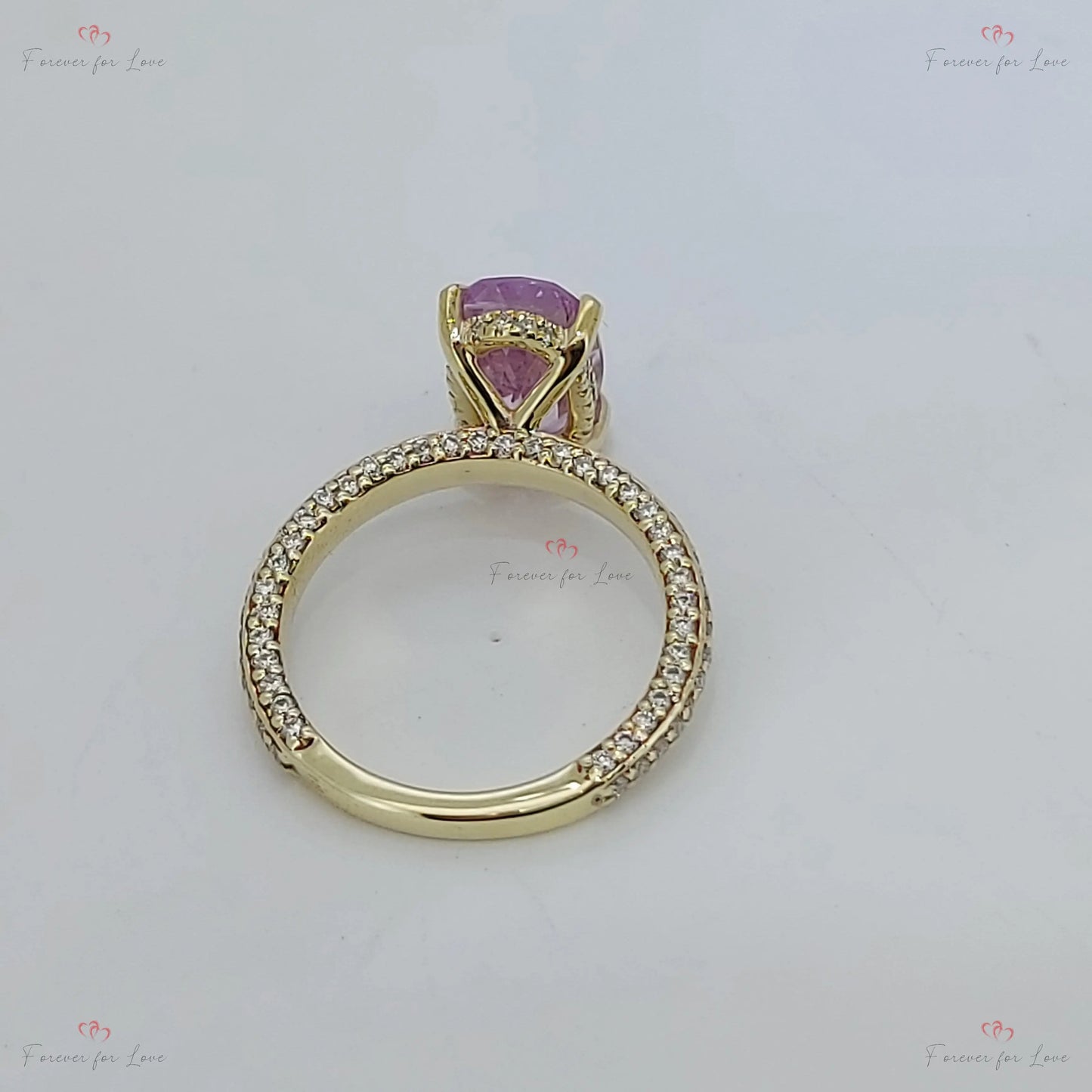 Bague en saphir rose de 3,45 ct avec bande pavée de diamants