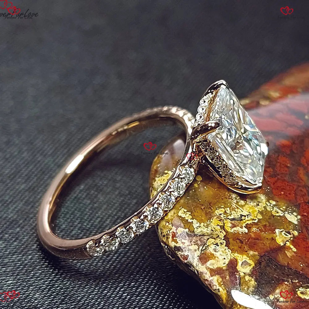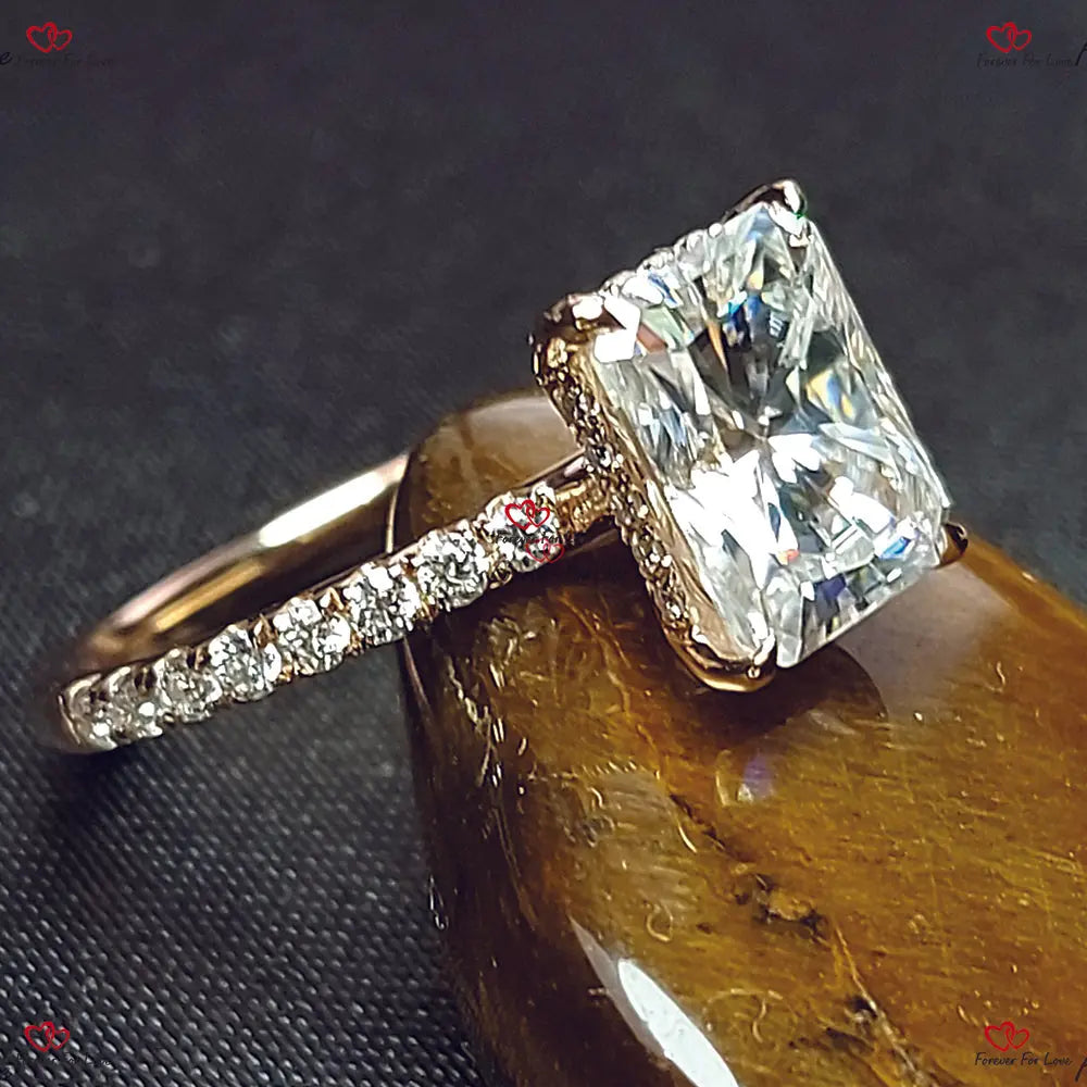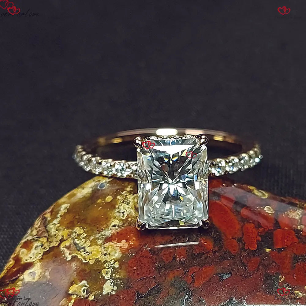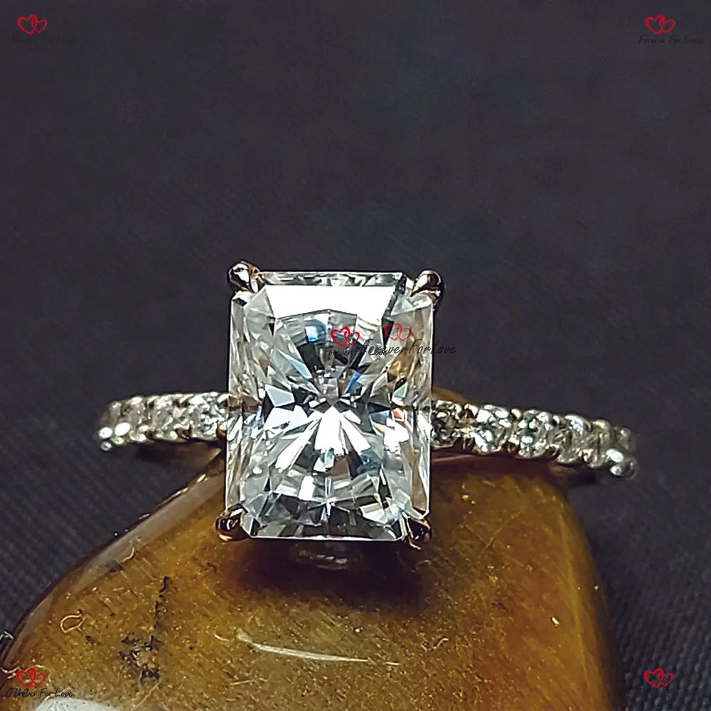 Bague de fiançailles en moissanite taille radiant | Diamant pavé | Moderne/Or blanc