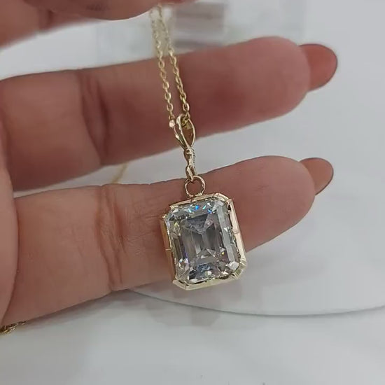 4 Ct Emerald Cut Moissanite Pear Pendant Necklace