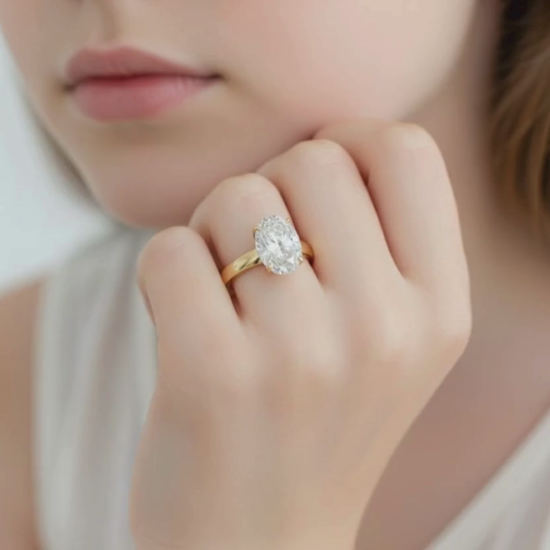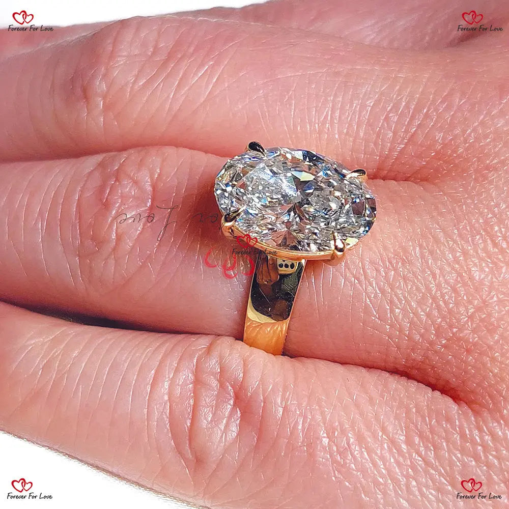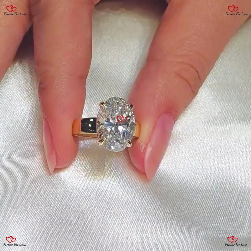 Bague de fiançailles avec diamant ovale de 5 carats et bande épaisse