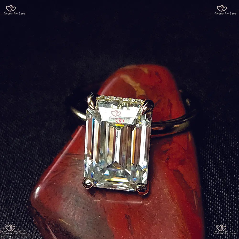 Bague de fiançailles avec diamant de laboratoire taille émeraude | Certifié IGI | Solitaire en or blanc