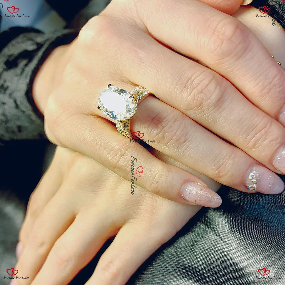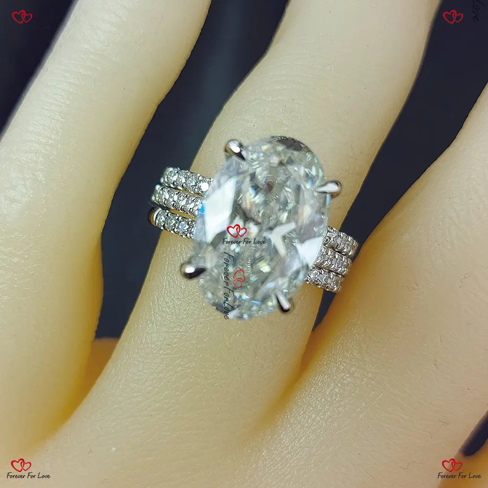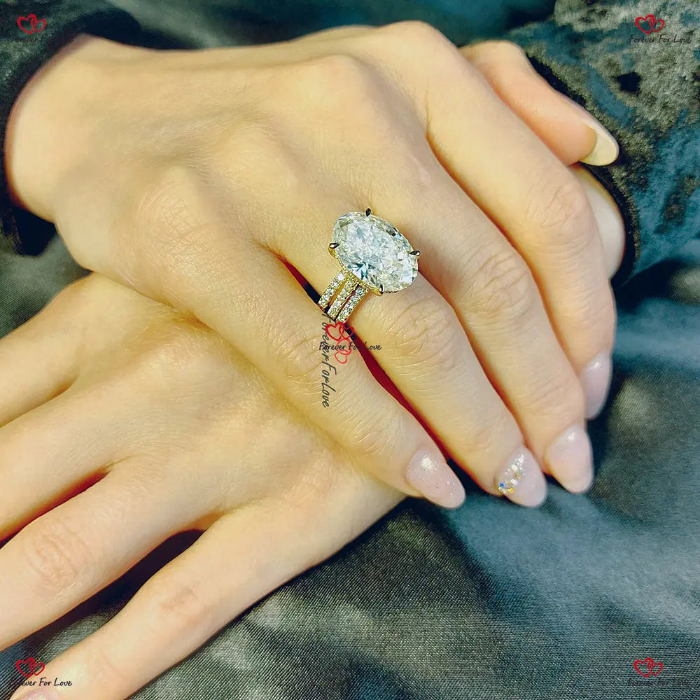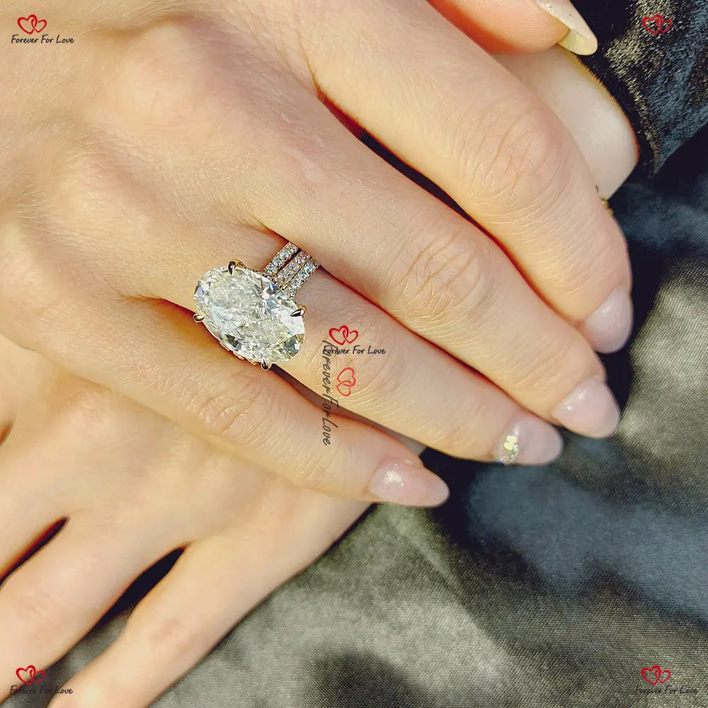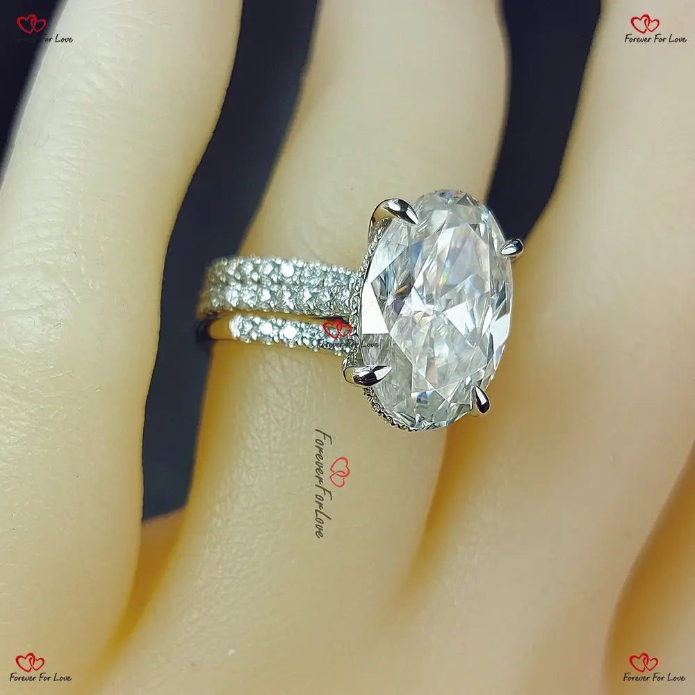 Bague de fiançailles en moissanite taille ovale avec glace pilée | Ensemble nuptial avec halo caché | Ensemble pavé